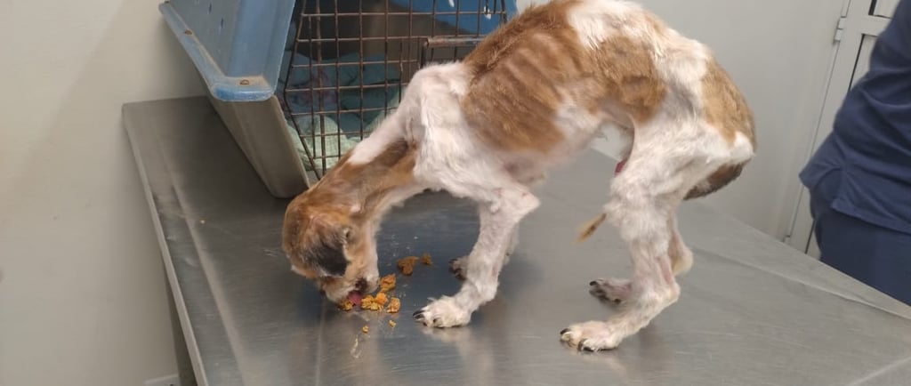 El baño se alargó, no por la suciedad, sino por la desconfianza. El secador hizo que Churro se encogiera; el cariño, poco a poco, bajó el escudo. La primera noche en el refugio fue de sueños cortos. La segunda ya tuvo rabo meneando. Comida, medicación y tiempo — tres palabras que parecen pequeñas, pero salvan.